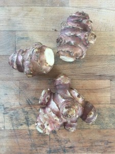 CREMA DI TOPINAMBUR CON GAMBERI IN CROSTA DI SEMI DI LINO E SEMI DI CHIA
