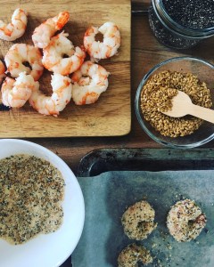 CREMA DI TOPINAMBUR CON GAMBERI IN CROSTA DI SEMI DI LINO E SEMI DI CHIA