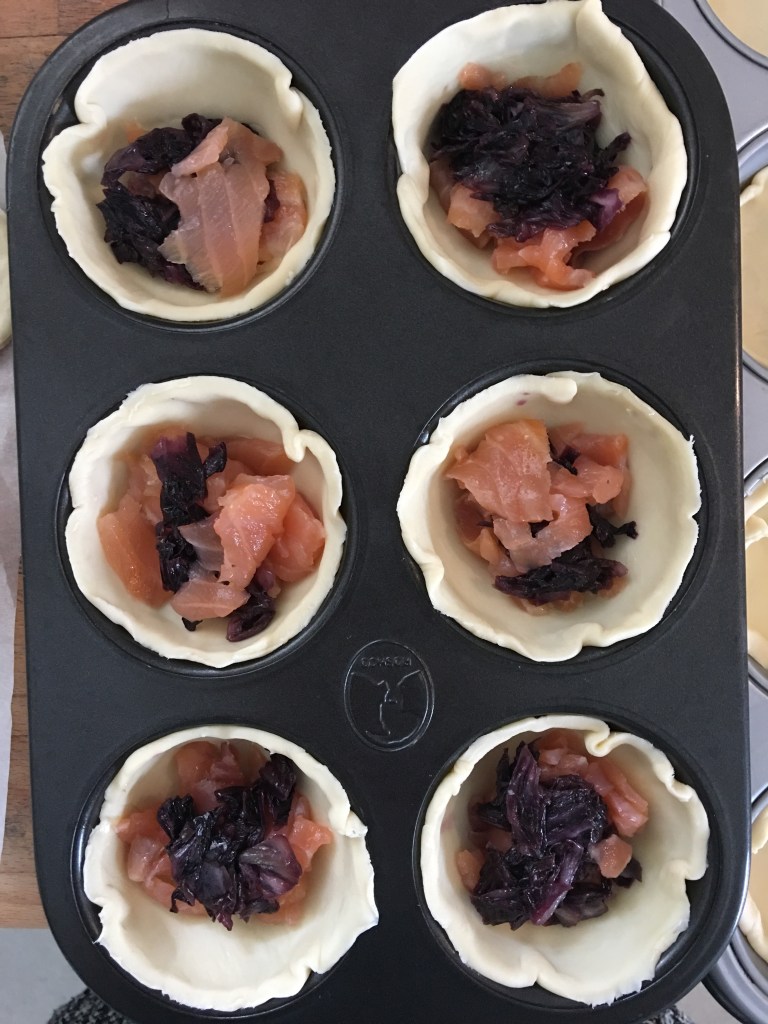 Questi piccoli tortini al salmone sono di una bontà unica. Preparati, cotti e spolverati in 5 minuti. Sono nati per caso. In casa avevo un rotolo di pasta sfoglia integrale e del salmone …l’abbinamento e’ venuto da solo ma, non volevo fare la solita torta salata ma qualcosa di più sfizioso, qualcosa che si potesse mangiare in piedi come aperitivo, come finger food. Ed ecco l’idea… sfiziosi tortini di salmone con besciamella ed erba cipollina…mmmm una bontà.