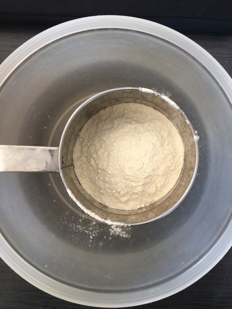 Prima di tutto dividete gli ingredienti secchi da quelli liquidi.