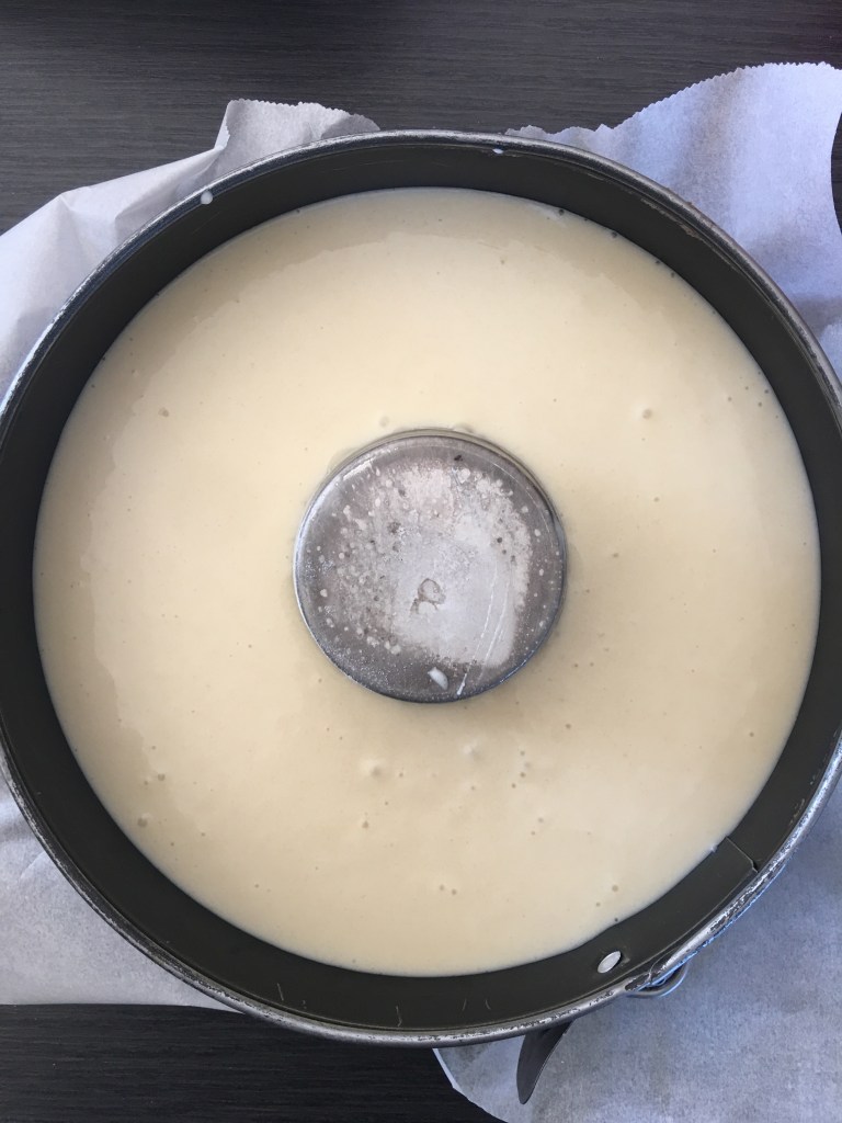 Adesso ungete e infarinate lo stampo per ciambella, versate il composto e infornate per circa 40 minuti a forno statico a 180 gradi. Vale sempre la prova dello stecchino. Il ciambellano dovrà’ essere bello dorato in superficie.