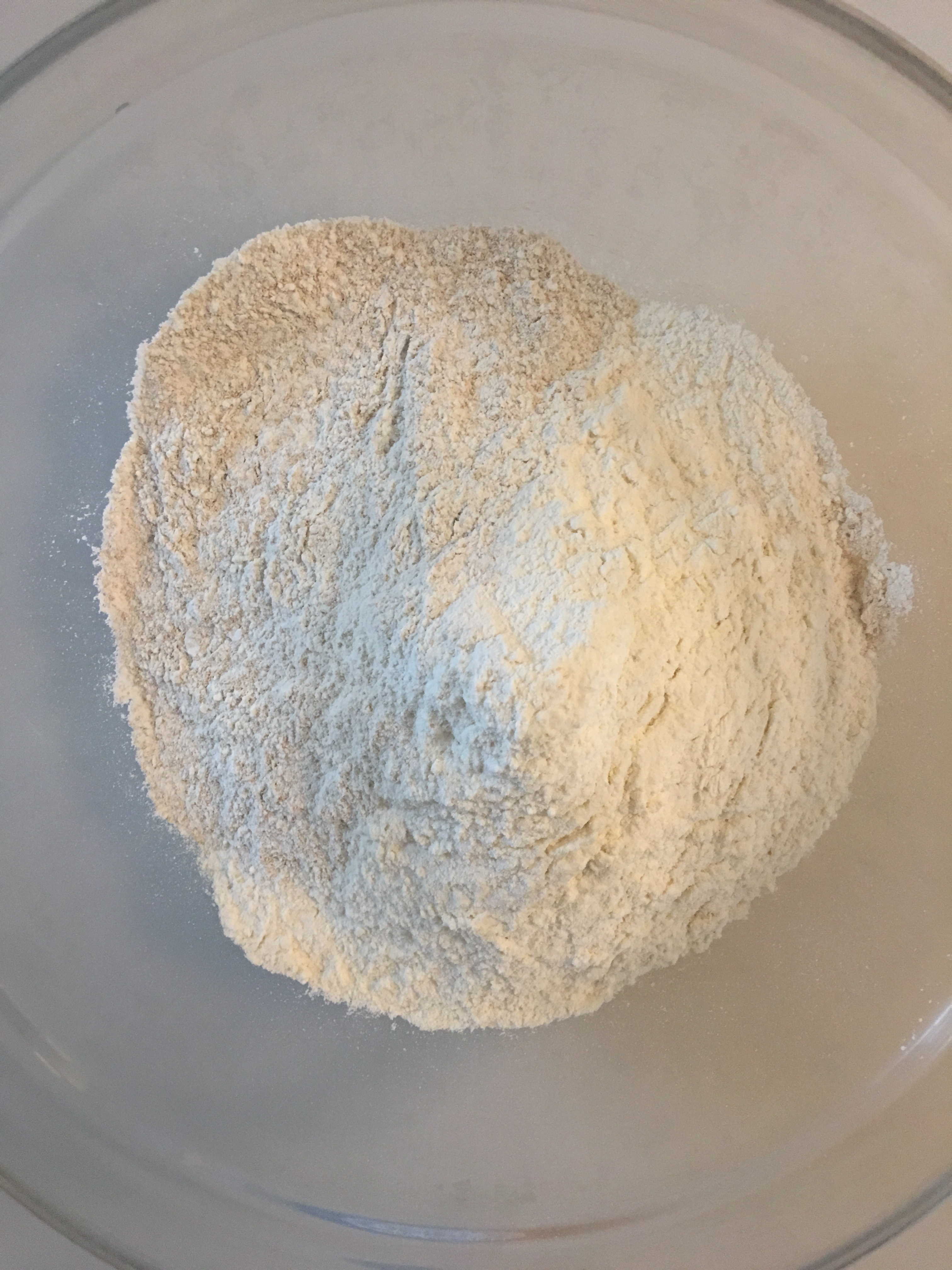 In un recipiente mettete le farine, lo zucchero e il lievito e amalgamate con le mani.