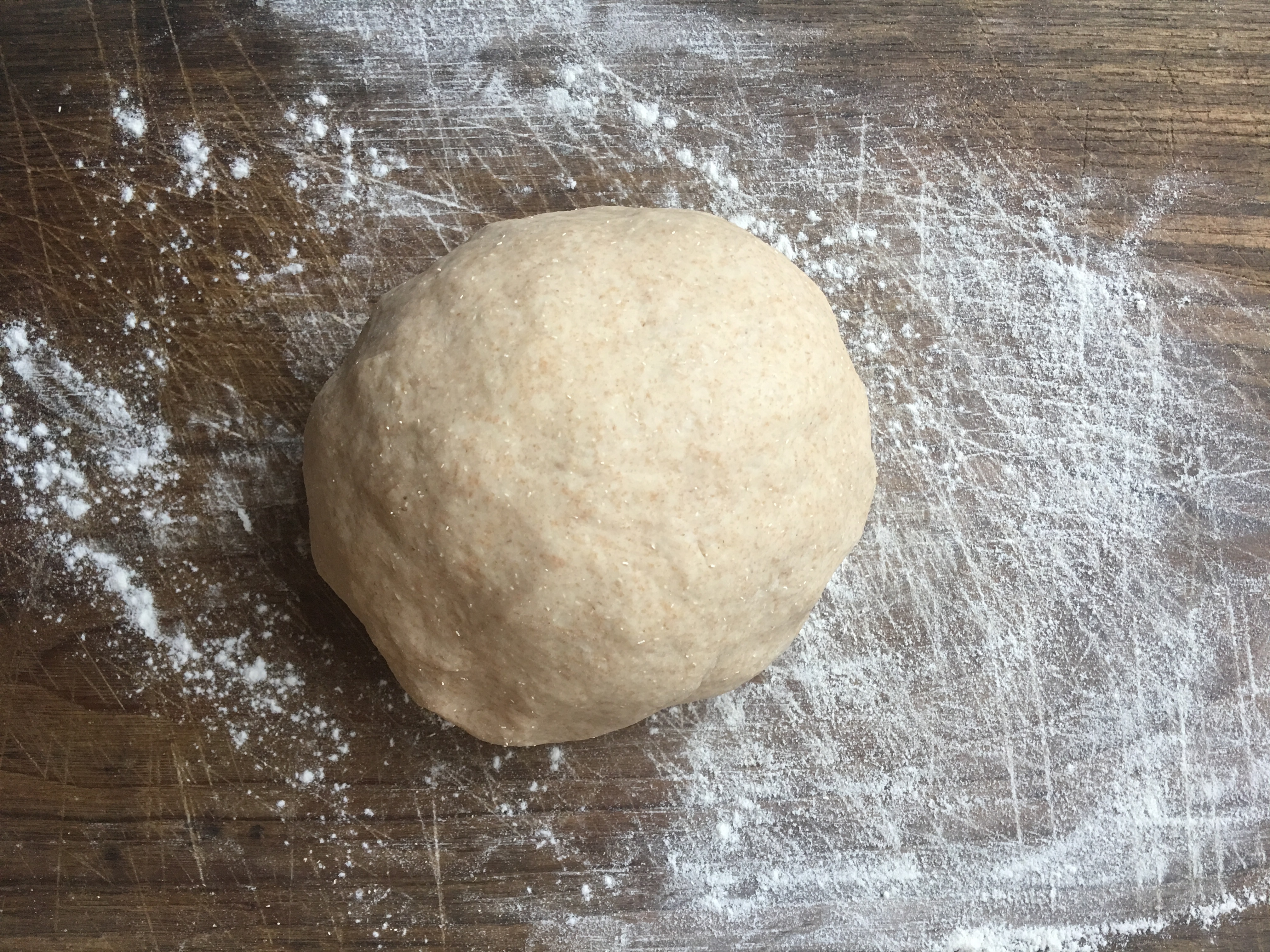 Versate l’acqua poco per volta e iniziate ad impastare dentro il recipiente, quando l’acqua sarà completamente assorbita, versate l’impasto su un piano di lavoro infarinato ed impastate fino a formare un panetto liscio.