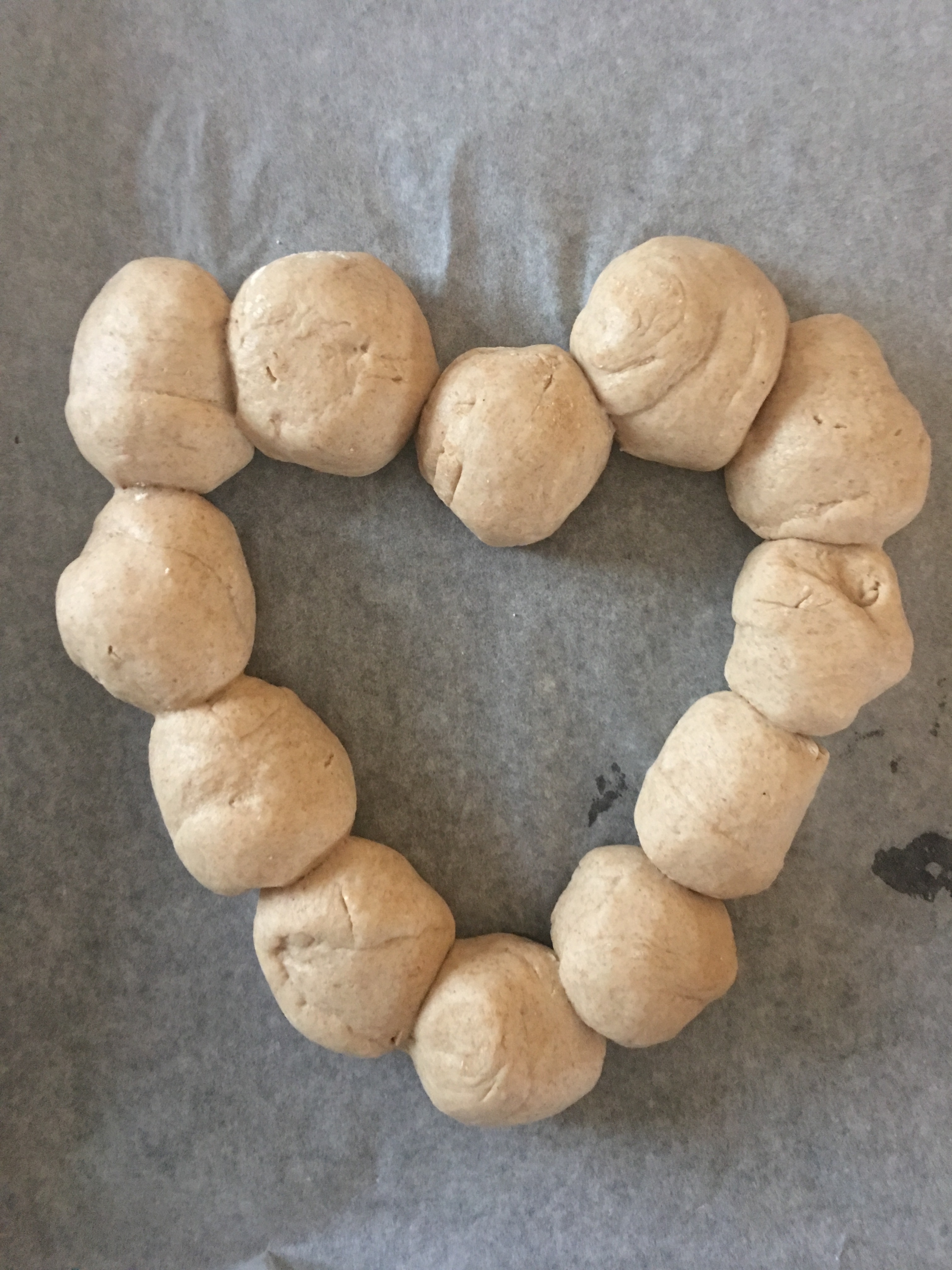 Adagiate ciascuna pagnotta in una teglia rivestita di carta da forno . Fate una forma a cuore.