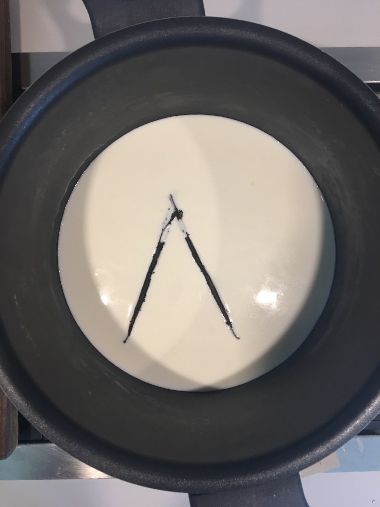 Torniamo alla bacca di vaniglia. Aiutandovi con la lama di un coltello estraete i semini e metteteli dentro una ciotola, mentre utilizzate il baccello per aromatizzare il latte e panna.