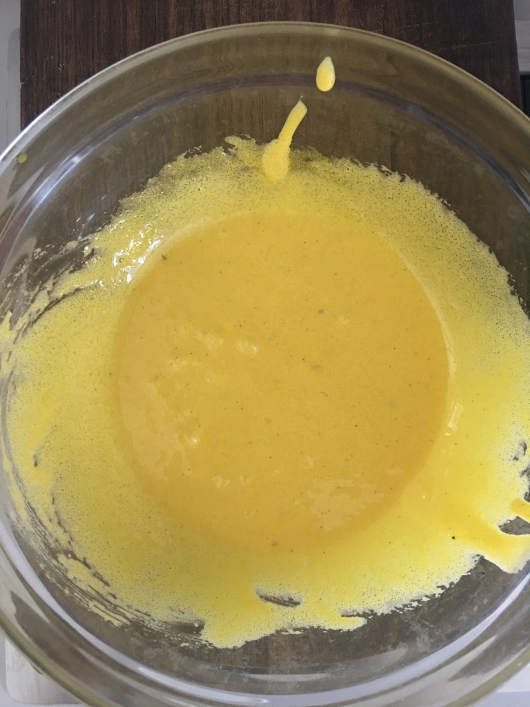 Quando il composto sarà ben amalgamato aggiugete l’amido di mais setacciato. Aggiungete un mestolo di latte e panna caldo e amalgamate, questo serve per stemperare il composto. A questo punto versate tutto nel pentolino con il latte e panna e mettete sul fuoco medio/basso, mescolando continuamente con la frusta.
