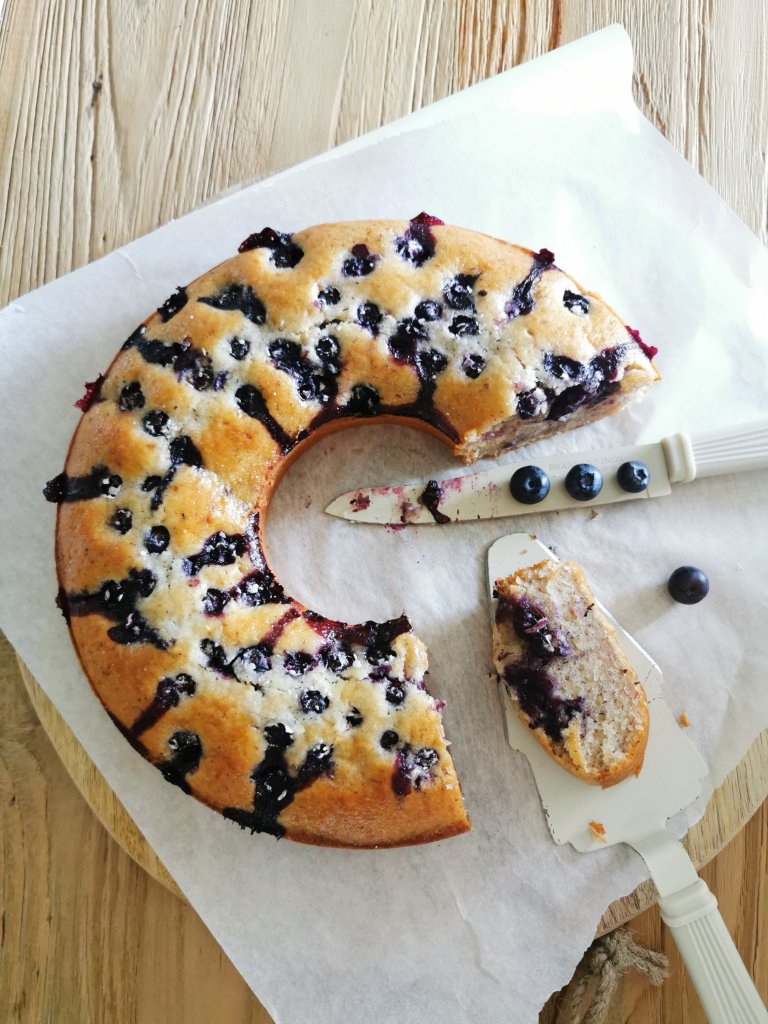Infarinate leggermente i mirtilli prima di metterli nell’impasto. Questo evitera’ che vadano sul fondo della torta ma resteranno ben in superficie.