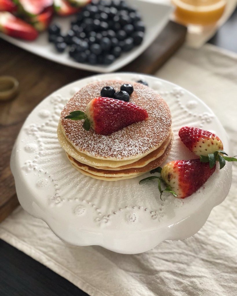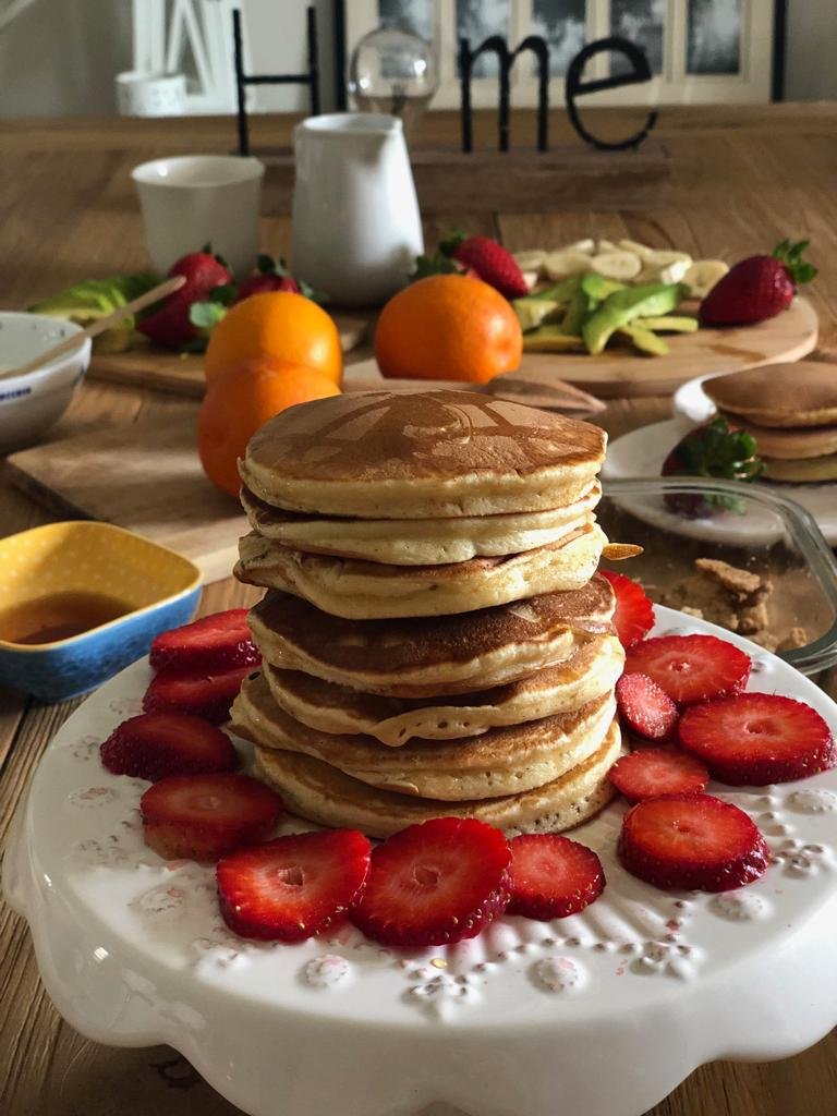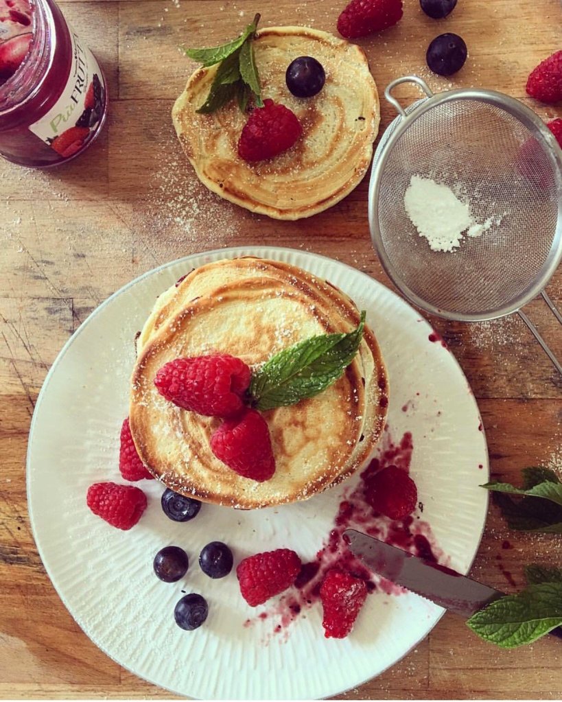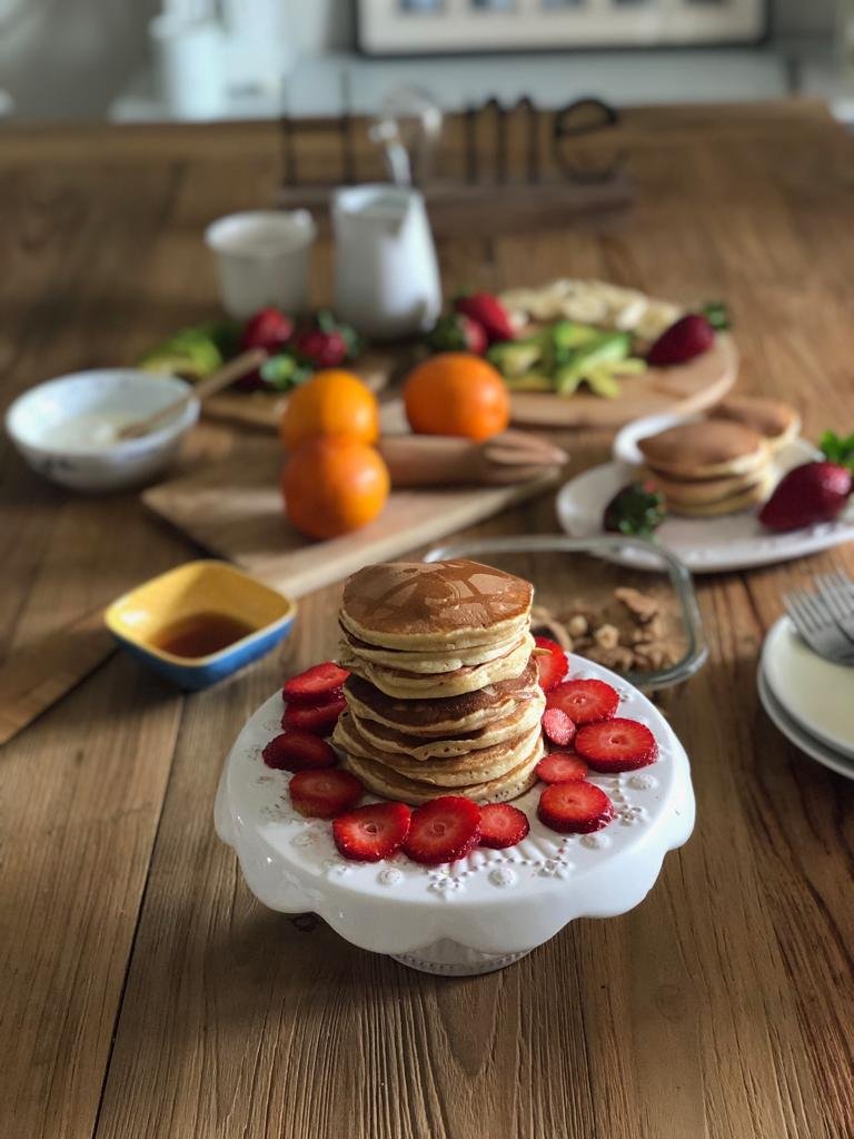 Vi consiglio di approfittare dell’estate e delle vacanze estive per coccolare voi e la vostra famiglia, servendo in tavola una montagna di Pancakes con frutta fresca di stagione yogurt e un buon caffè.