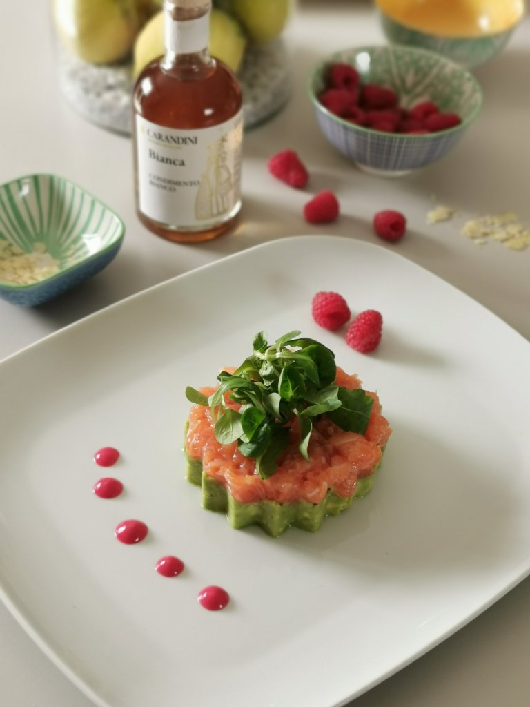 Prendete BIANCA il condimento Bianco di Carandini @carandiniofficial https://www.carandini.it/e versatelo con dolcezza direttamente sul salmone. Bianca è ciò che renderà speciale il vostro piatto. Un condimento bianco, leggero e fresco ideale per insaporire ed impreziosire con grazia ed eleganza la vostra tartare di salmone. Un condimento delicato che non alterà il colore vivo del salmone ma saprà donarli una marcia in più.
