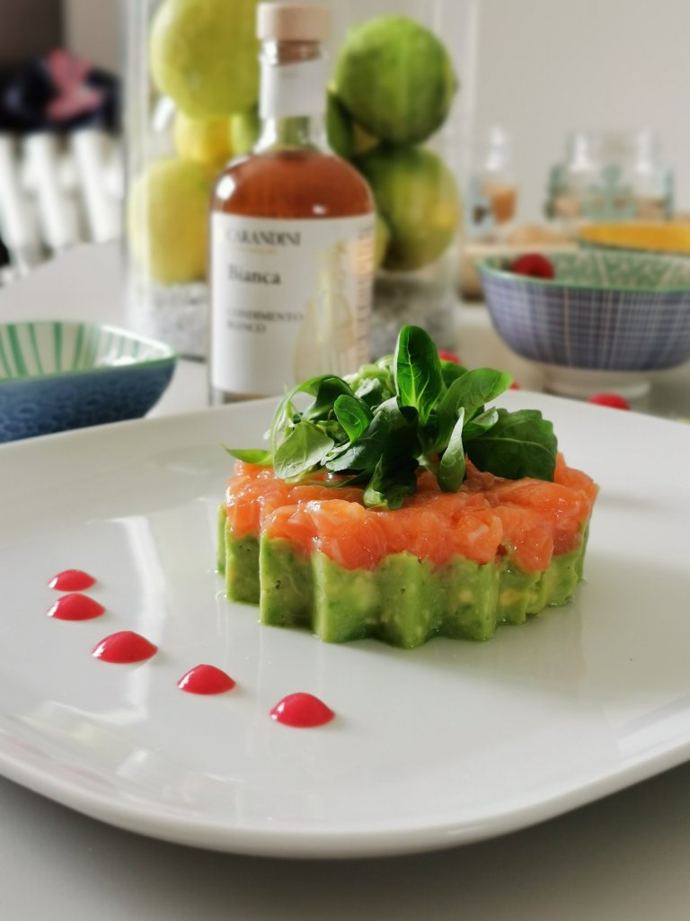 Come questa TARTARE DI SALMONE CON AVOCADO E MANDORLE E CONDIMENTO BIANCO …una vera bontà resa tale da un condimento unico nel suo genere BIANCA il Condimento Bianco di Carandini @carandiniofficial https://www.carandini.it/. Bianca e’ un condimento bianco, leggero e fresco ideale per insaporire ed impreziosire con grazia ed eleganza la vostra tartare di salmone. Un condimento delicato che non alterà il colore vivo del salmone ma saprà donarli una marcia in più. Un condimento unico e speciale che non può mancare sulle vostre tavole.