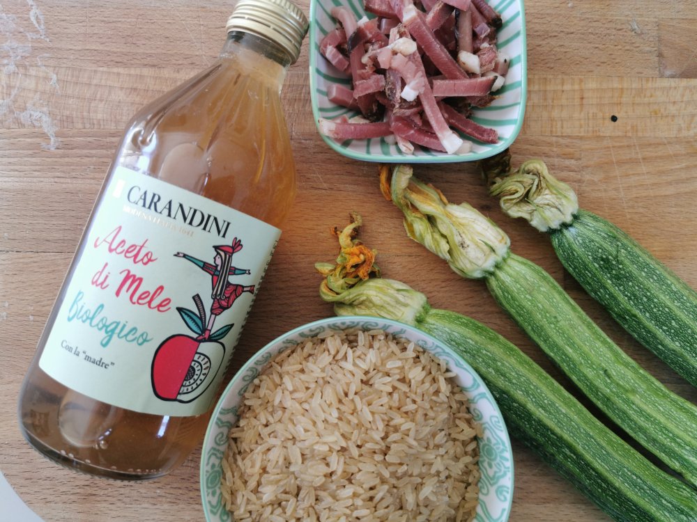 Per questo amo tantissimo provare prodotti ed ingredienti in modi differenti e perchè no …azzardare e osare. Come nella ricetta che vi propongo oggi : Risotto integrale zucchine e speck mantecato con l’aceto di mele biologico @carandiniofficial
