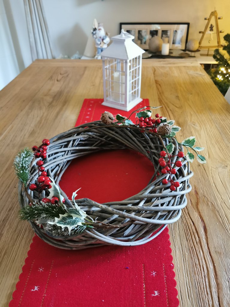 La ghirlanda e’ molto bella anche da utilizzare in tavola come centro tavola magari abbinandola a delle candele.
