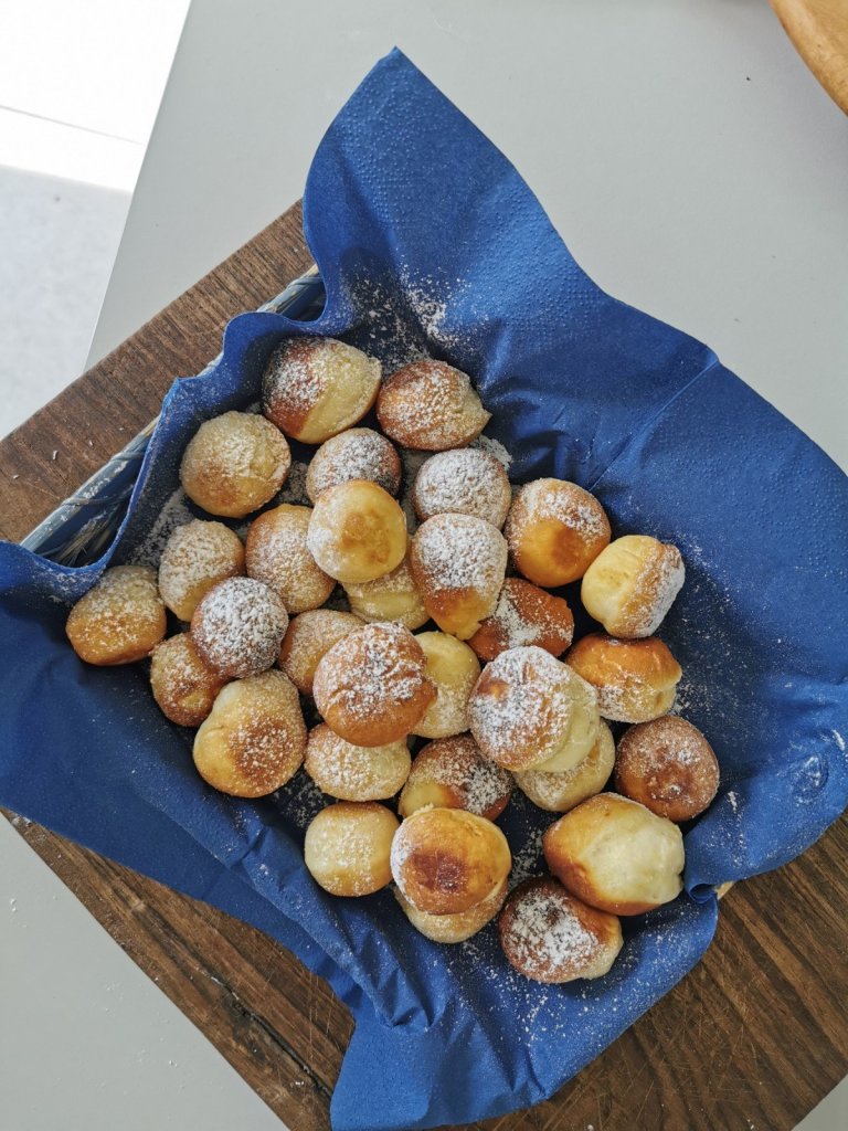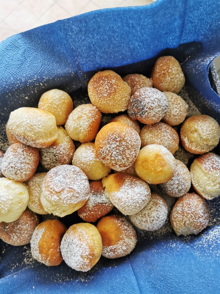 A questo punto , spolverizzate le castagnole con dello zucchero a velo e zucchero semolato.