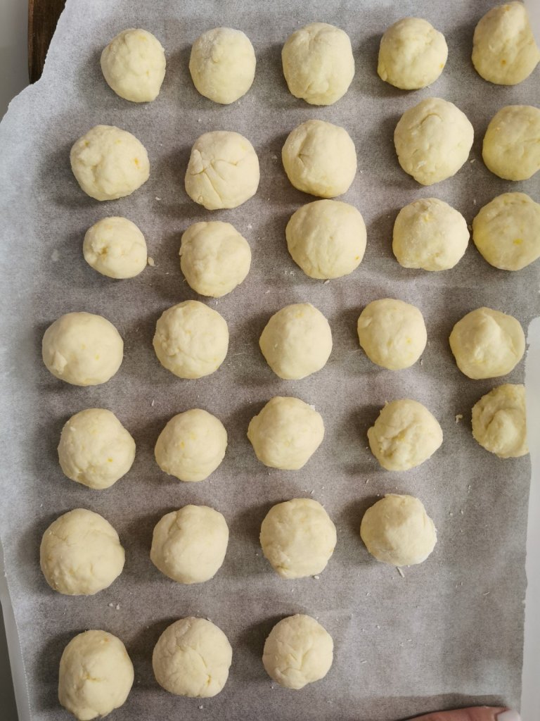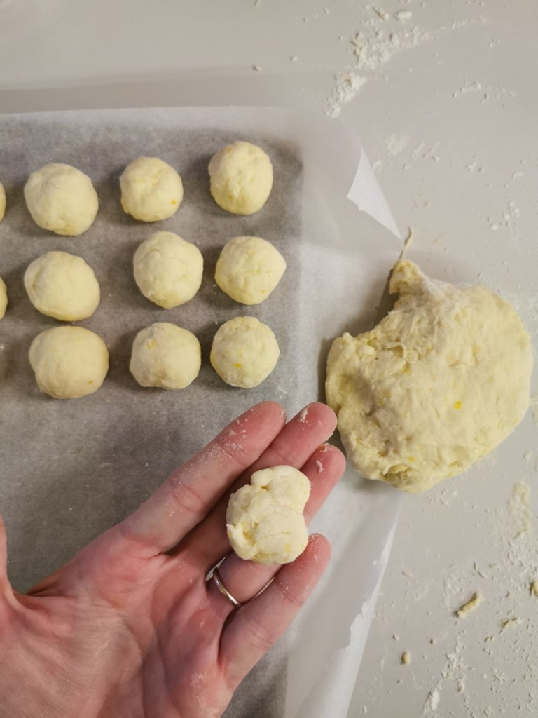 L’impasto risulterà appicicoso, infarinate spesso le mani così da riuscire a lavorarlo e ricavarne dei piccoli pezzi con cui formerete delle palline più o meno della solita dimensione.