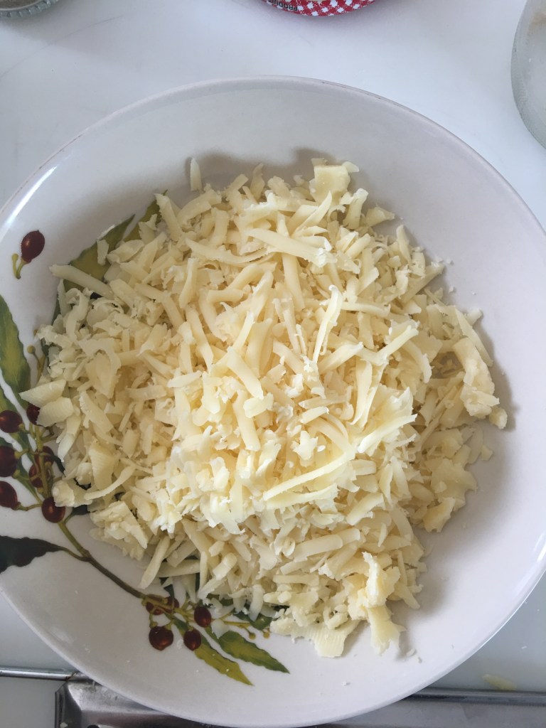 Grattugiate l’emmental e tagliate il salmone. Tenete da parte.