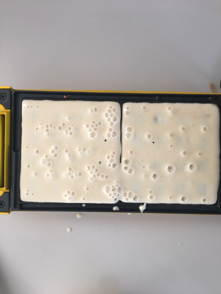 Versate una dose di pastella nella piastra e iniziate a creare i vostri waffles.