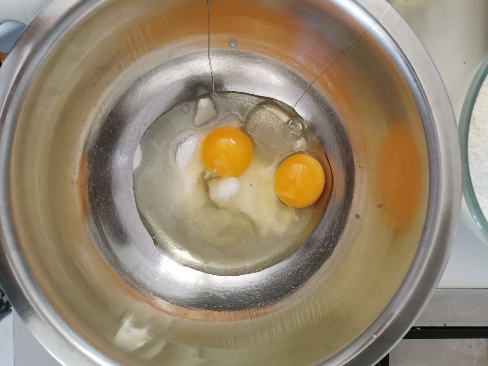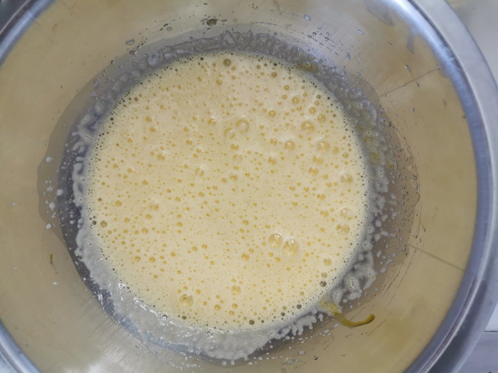 Prendete una grande ciotola. Mettete dentro lo zucchero e le uova e lavorare subito con una frusta elettrica. Quando il composto sarà ben amalgamato e cremoso aggiungete a filo e lentamente l’olio e il latte sempre continuando a mescolare con la frusta elettrica.