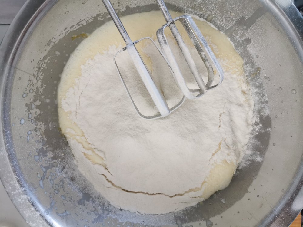 A questo punto inserite la farina setacciata e riprendete a mescolare fino ad attenere una pastella liscia e senza grumi.