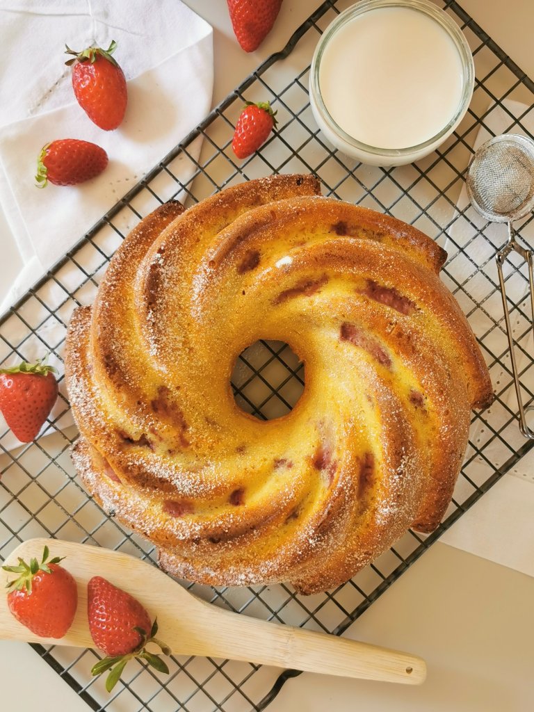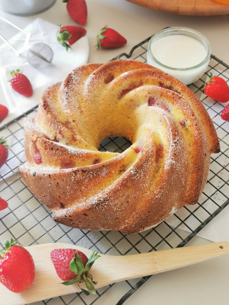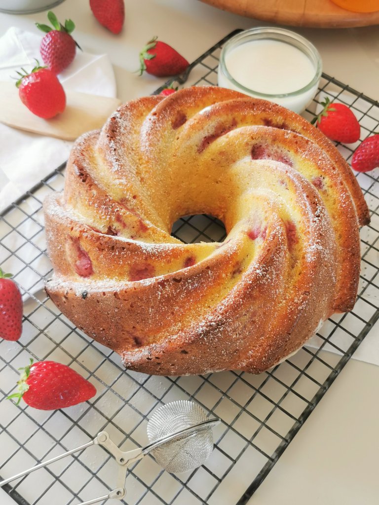 Nel frattempo che il forno si riscalda, tagliate le fragole a piccoli pezzi ed aggiungetele all’impasto. Amalgamatele bene e versate l’impasto nella tortiera.