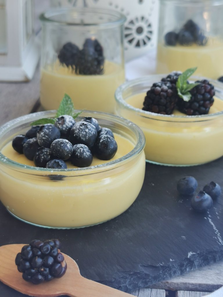 Sto parlando dei BICCHIERINI DI CREMA PASTICCERA AL LIMONE CON MORE E MIRTILLI