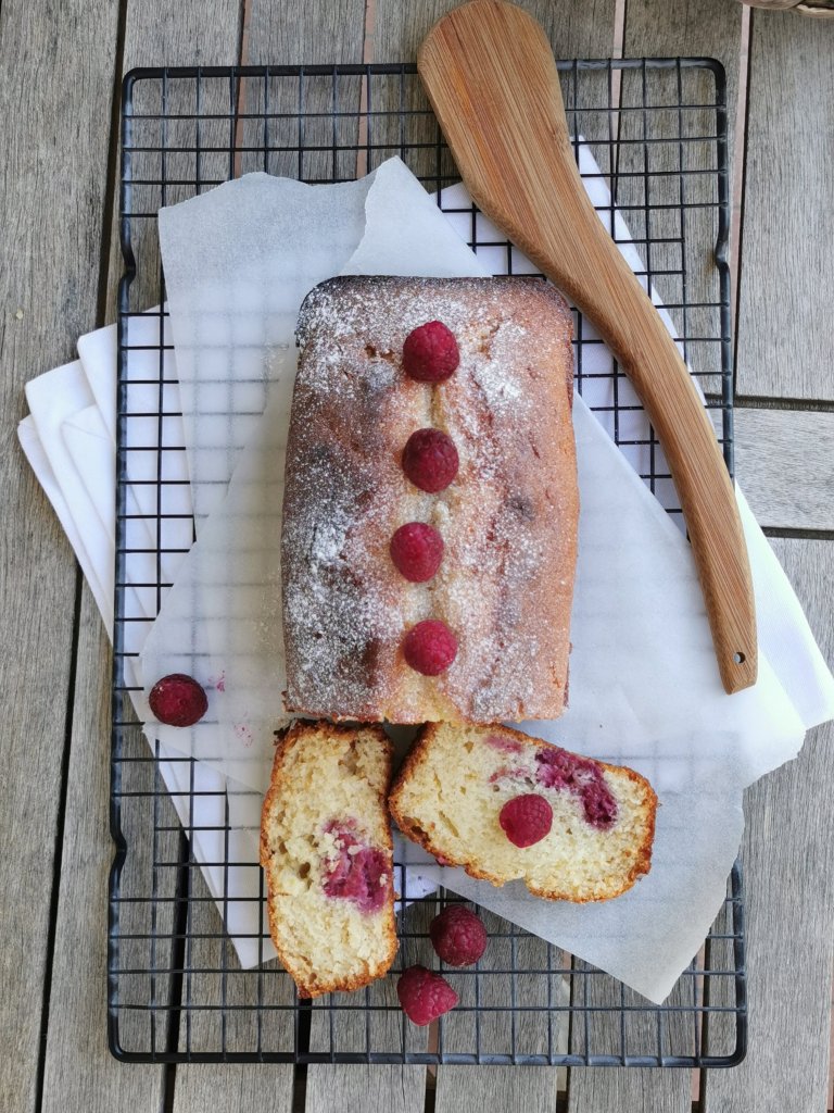 Infornate a 180° per circa 30 minuti, finchè il plumcake sarà bello dorato. Fate comunque la prova stecchino prima di sfornarlo. Sfornate e lasciate raffreddare bene prima di toglierlo dalla teglia. Spolverizzate a piacere con lo zucchero a velo e qualche lampone.
