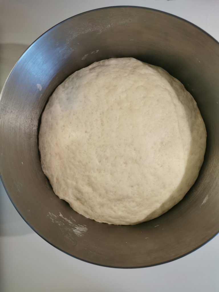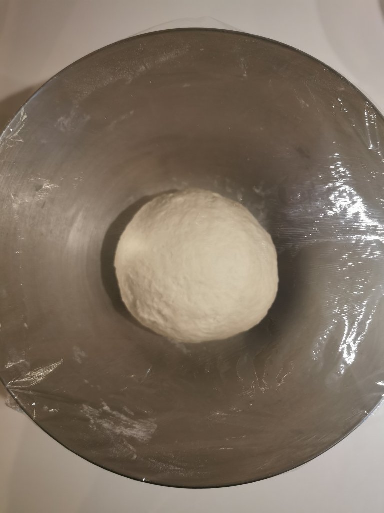Mettete l’impasto a lievitare in una ciotola leggermente unta coperta con pellicola alimentare nel forno spento con luce acceso fino a che aumenterà di volume. Ci vorranno circa 2 ore.