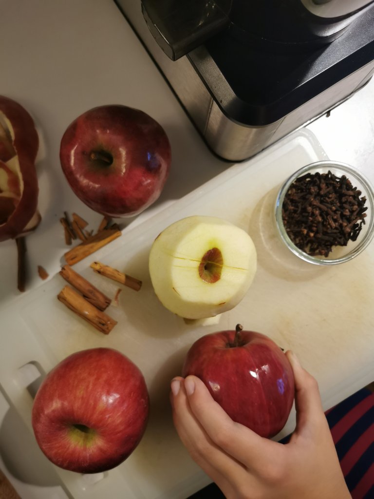 Coinvolgeteli fin dall’inizio , andando con loro a comprare le mele rosse e le spezie , sara’ un modo per renderli ancora di piu partecipi!!