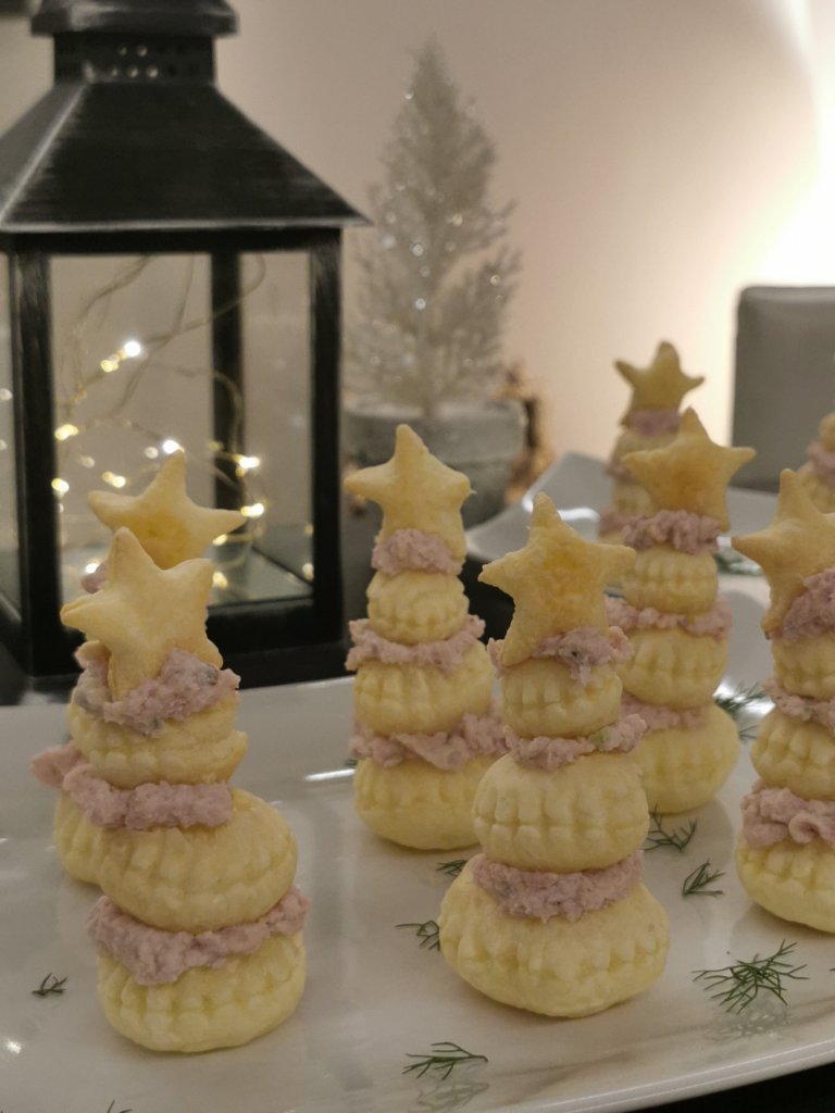 - Potete fare una versione dolce di questi alberelli sostituendo la crema salata con una dolce tipo crema la mascarpone senza uova o ganache di cioccolato .