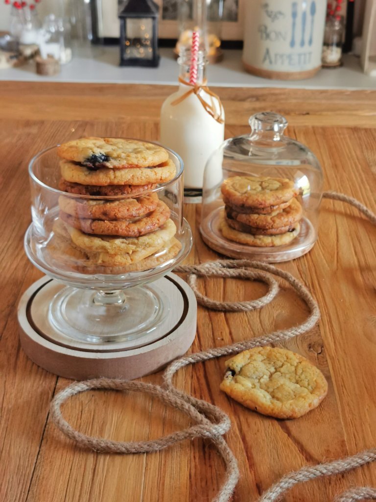 Oggi vi propongo dei biscotti che non hanno bisogno di presentazioni o particolare descrizione…sto parlando dei COOKIES quelli veri made in USA ma ho fatto una variante alla classica versione , ovvero : COOKIES CIOCCOLATO BIANCO E MIRTILLI .