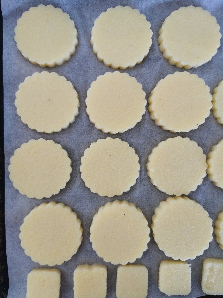 Adesso prendete un coppapasta rotondo di circa 5 cm e intagliate la polenta. Con l’aiuto di una spatolina adagiate le polentine su una placca da forno rivestita da carta da forno.