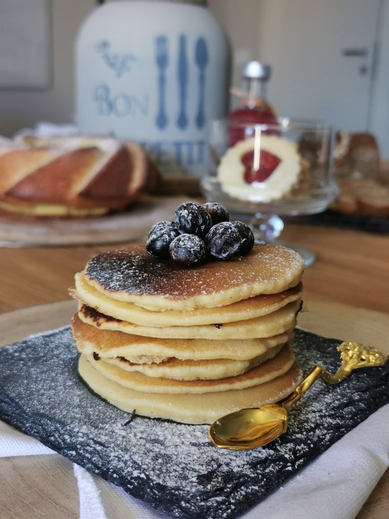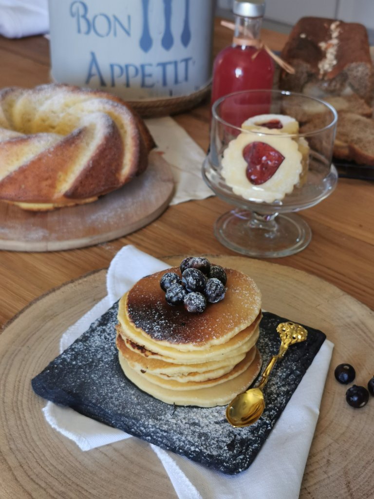 Vi consiglio di approfittare dell’estate e delle vacanze estive per coccolare voi e la vostra famiglia, servendo in tavola una montagna di Pancakes con frutta fresca di stagione yogurt e un buon caffè.