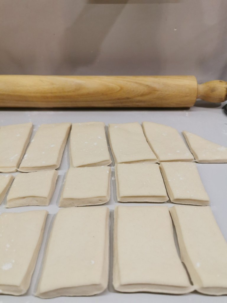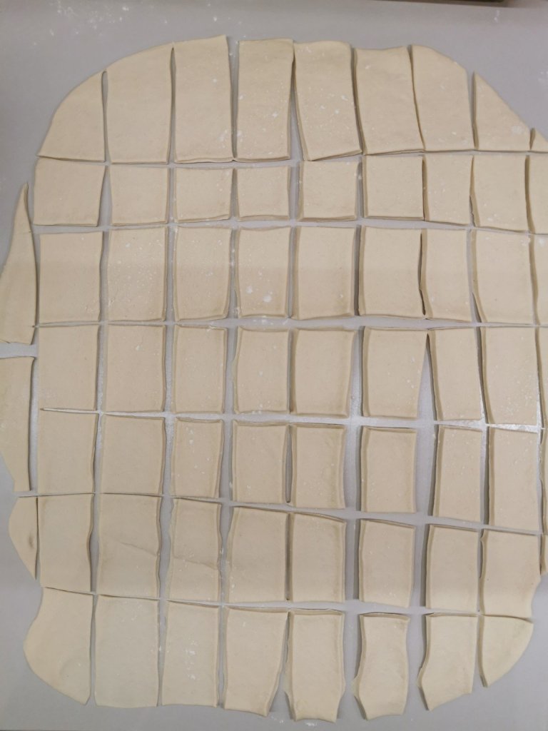 Intagliate la pasta in tanti rettangoli.