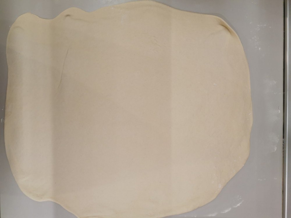 Passato il tempo, riprendete il panetto . Infarinate un piano di lavoro e stendete la pasta con il mattarello. Dovra’ essere uno spessore di mezzo centimetro.