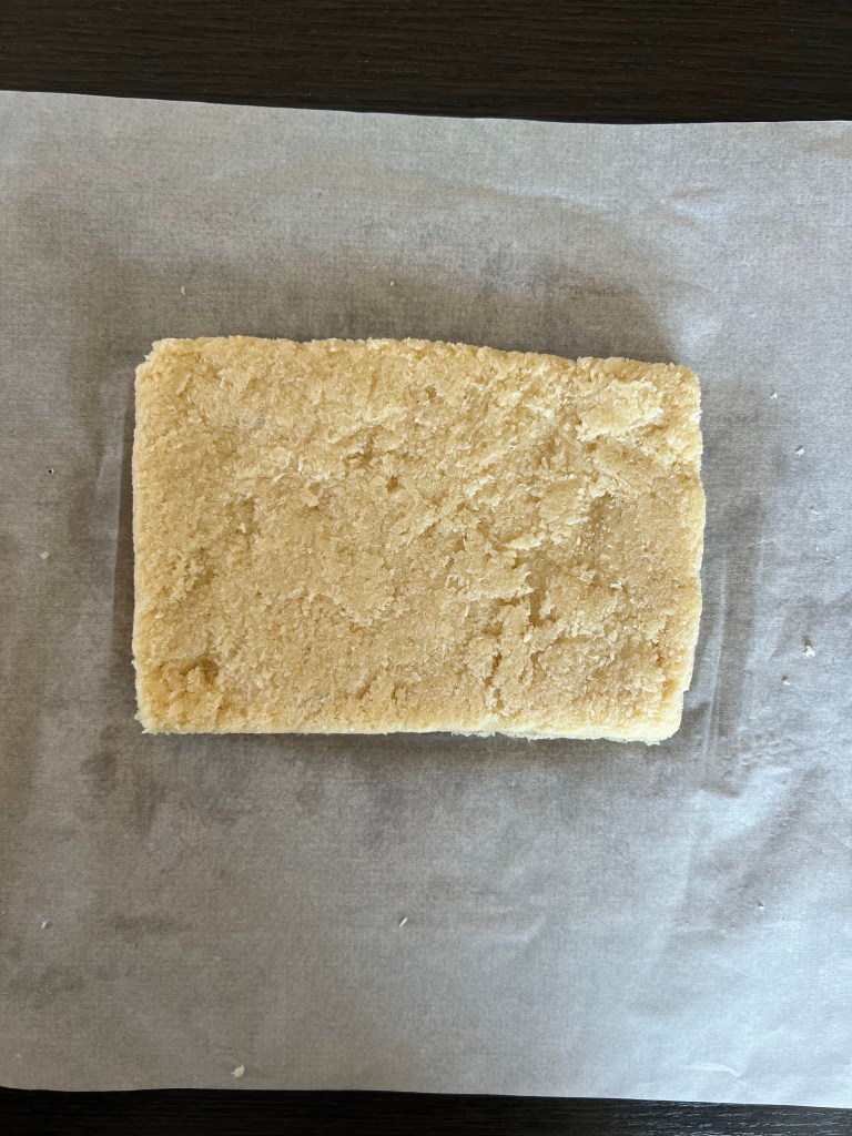 Trasferite il tutto su un foglio di carta forno e con le mani ricavate un rettangolo di almeno 2-3 cm di altezza. Trasferite in frigorifero a raffreddare per circa 2 ore ( anche tutta la notte se volete )