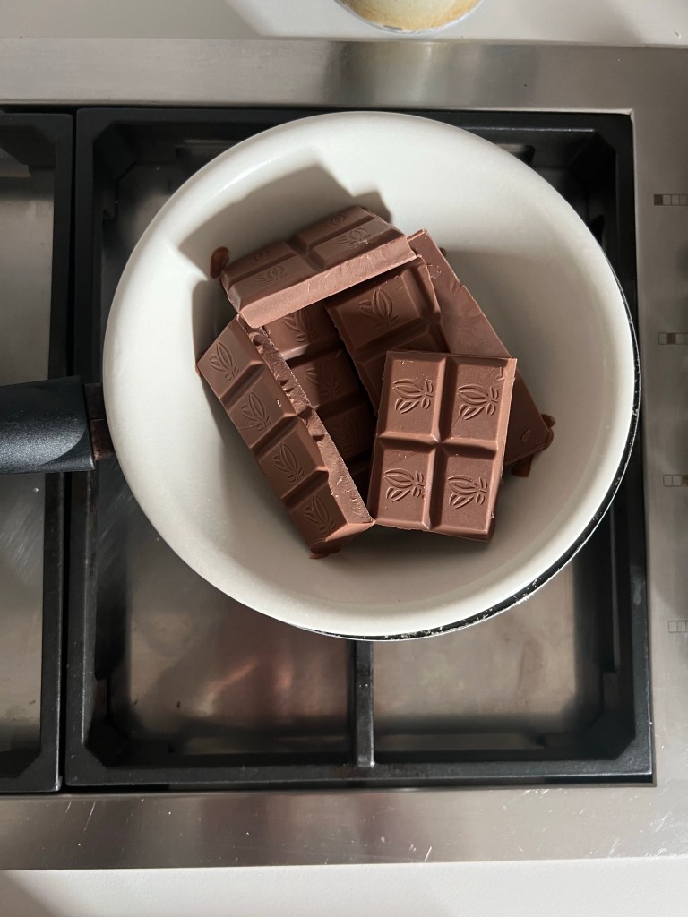 Rimettete in frigo le barrette. Nel frattempo a bagno maria sciogliete il cioccolato.